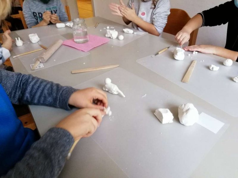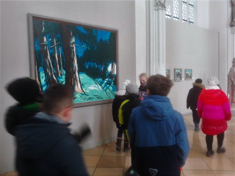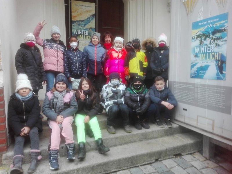 Im Dezember besuchten die vierten Klassen in der Heiliggeist-Kirche die Ausstellung „Winter im Licht“. Am Kunsttag wurden Werke des Landshuter Künstlers Bernhard Kühlewein betrachtet und analysiert. In der Nachbereitung gestalteten die Kinder Winterbilder.