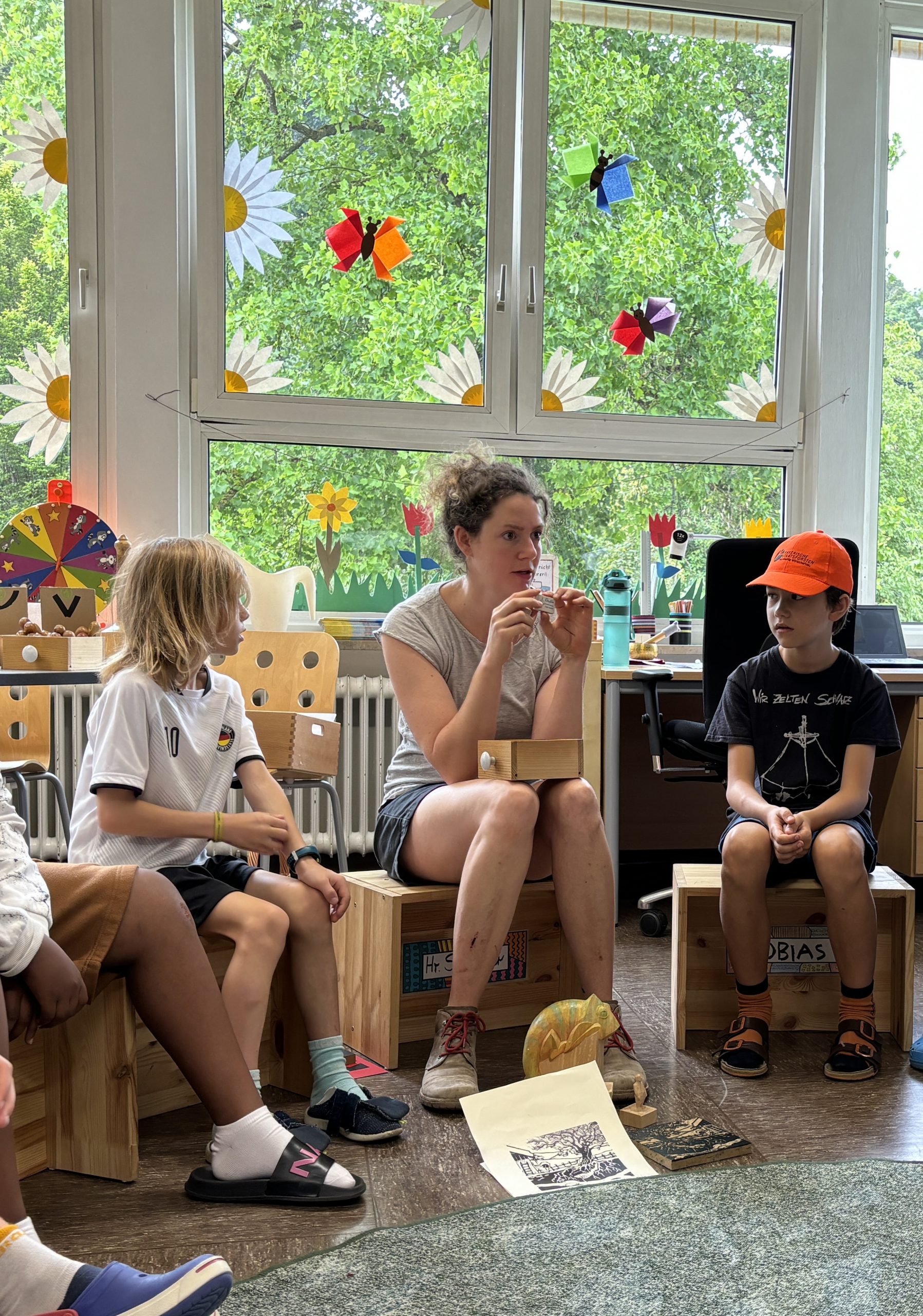 Zusammen mit der Landshuter Bildhauerin und Illustratorin Lisbet Werner gestalteten Kinder der Klassen 3a und 4a Stempel, die für gemeinsame und individuelle Drucke verwendet wurden.